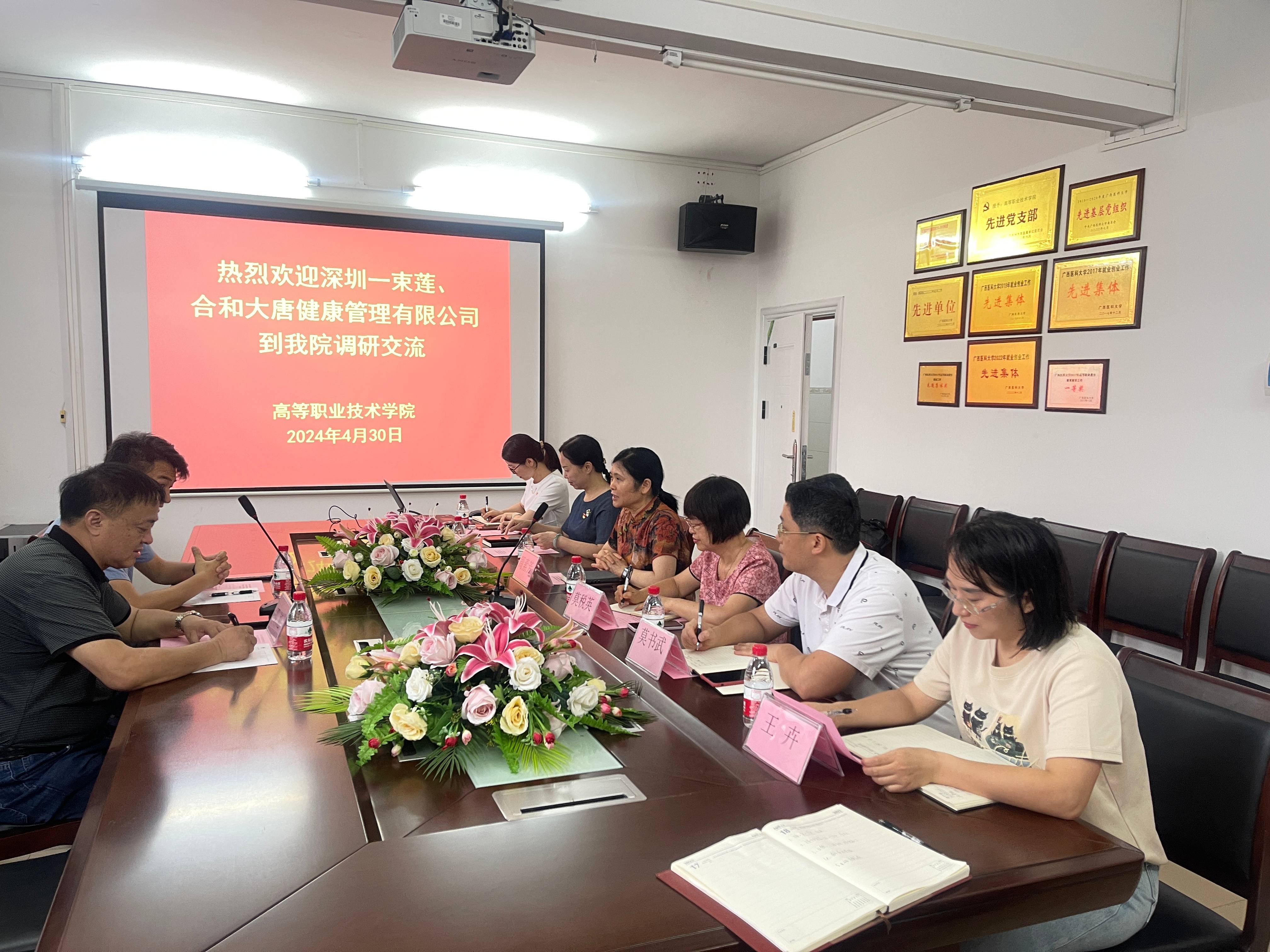 4月30日上午,一束莲健康管理投资有限公司执行总经理卢正阳及合和大唐健康管理有限公司行政经理邓旭到我校英国上市公司365交流,英国上市公司365院长周素芳、副院长莫税英、副院长谭珍媛及各科室负责人参加了交流座谈会。会议由周素芳院长主持。