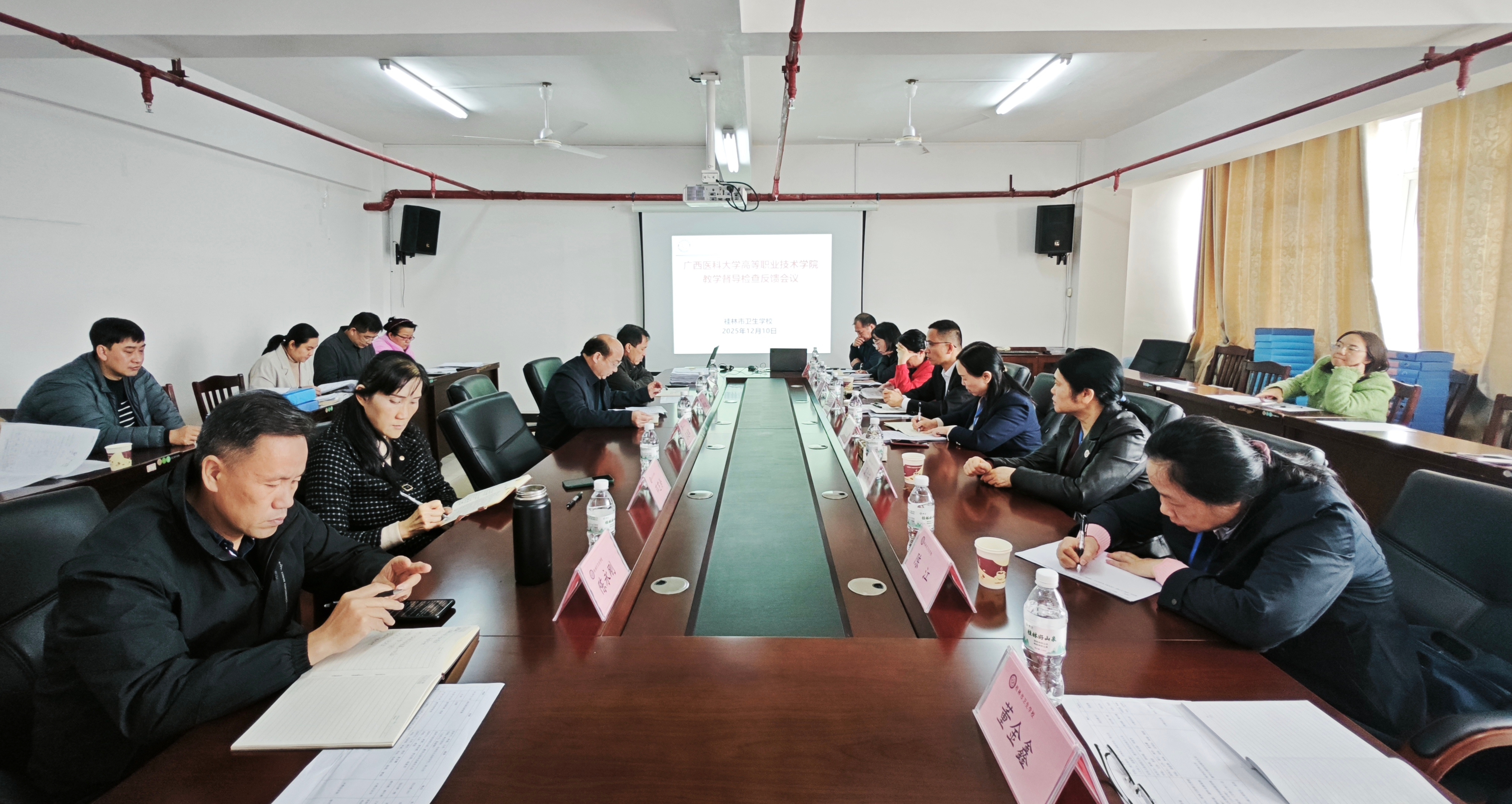 本次检查通过“听取汇报、随堂听课、师生座谈、材料查阅、现场反馈”等形式开展。检查组首先听取了桂林市卫生学校教育教学工作汇报,随后分别与班主任及辅导员代表、教师代表、学生代表进行面对面座谈,广泛听取教学管理、课程实施、学习体验等方面的意见和建议。督导专家深入课堂听课督导,并对教学课件、教案等材料进行检查。教务科工作人员细致核查了师资、教学、考务、学籍等档案资料,全面评估教学运行的规范程度。